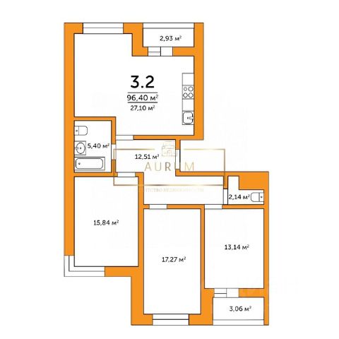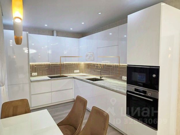 В квартире проведено индивидуальное отопление, газовый двухконтурный котел расположен на просторной кухне-гостиной площадью 26,66 кв.м. с лоджией 5,7 кв.м. Гостевая зона отделена от приватной зоны спален планировочным решением и оборудована просторным санузлом, коридорной зоной и гардеробной.