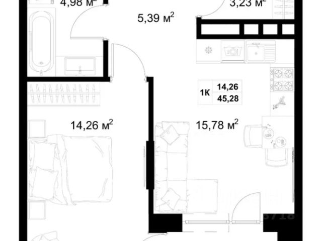 Общая площадь квартиры: 44,9 кв.м. Просторная лоджия.