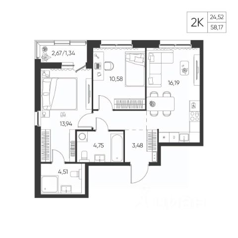Продаётся 2-комнатная квартира в строящемся доме (Дом 28), срок сдачи: I-кв. 2027, общей площадью 39.1 кв.м., на 11 этаже. Расположение, транспортная доступность Новый жилой комплекс "Юго-Восточный" строится в Туле, в 3,5 км от центра города. Благодаря удачным транспортным развязкам, автолюбители смогут доехать до центральных кварталов примерно за 5 10 минут, составив наиболее быстрый и удобный маршрут с учетом загруженности дорог. Проблем с мобильностью не возникнет и у пассажиров общественного транспорта. Рядом с домом расположены остановки автобусов и маршрутных такси, которые быстро довезут до любого района города. Так, чтобы добраться до центра, следует дойти пешком до остановки "Медтехника", где останавливается маршрутное такси, доезжающее до центральных кварталов всего за 7 8 минут. Инфраструктура Район, где возводится новый жилой комплекс, активно застраивается, и сеть инфраструктуры сов временем будет расширяться. Но и сейчас все, что нужно для комфортной жизни в городе, находится недалеко от жилого комплекса. В шаговой доступности расположены продуктовые магазины: "Виктория", "Овощи-фрукты", Магазин рыбы и мяса птицы, магазин мяса и колбас "У Максима", супермаркеты "Дикси", "Пятерочка", "SPAR". Неподалеку находится гипермаркет "Линия", крупный торговый центр, в котором расположены отделения банков, гипермаркет "Глобус", салон оптики, мебельный магазин "Столплит", зоомагазин "Четыре лапы" и пр. В соседнем здании находится строительный гипермаркет "Леруа Мерлен", за ним крупный магазин товаров для спорта, туризма и активного отдыха "Декатлон".Недалеко от жилого комплекса открыты кафе и рестораны: кофейня "Bonape", пиццерия "Культура", кафе "Вкуснов", кафе быстрого обслуживания "Rapido", ресторан "У фонтана" и пр.В районе есть аптеки, поликлиники, диагностические центры. В шаговой доступности от жилого комплекса расположено несколько детских садиков, в том числе, садик комбинированного вида "Алые паруса". Есть дошкольные отделения, входящие в состав образовательных центров, Центры развития ребенка. Поблизости расположены средние школы, в том числе, школа для детей с ОВЗ. Рядом с жилым комплексом находится Тульская Духовная Семинария и Суворовское училище. Надежность застройщик: достраивает объект ООО Ин-Групп.АрхитектураЖилой комплекс будет представлен 19 монолитно-кирпичными корпусами переменной этажности, выполненными в едином архитектурном стиле. При строительстве ЖК "Юго-Восточный" применяются современные материалы высокого качества, которые обеспечивают надежность домов и комфортный микроклимат в помещениях. Каждая секция оснащается современными лифтами. Помещения общего пользования отделываются экологичными материалами. Квартиры предлагаются однокомнатные (от 43,9 кв. м), двухкомнатные (от 45,8 кв. м), трехкомнатные (от 60,4 кв. м) и четырехкомнатные (от 87,2 кв. м), а также уютные студии (от 28,9 кв. м).На внутренней территории проводится комплексное благоустройство: озеленение, организация игровых площадок, мест для отдыха и зан