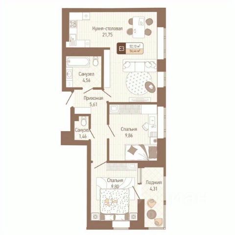Продаётся 3-комнатная квартира в строящемся доме (Позиция 1), срок сдачи: III-кв. 2029, общей площадью 85.59 кв.м., на 12 этаже. Новый жилой комплекс в г. Тула "Платон Парк" от застройщика ООО "СЗ "МОНОЛИТ""