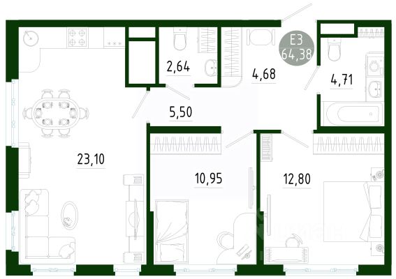 — Готовый ремонт — полный пакет: натяжные потолки, обои под покраску, ламинат, межкомнатные двери, сантехника, розетки, выключатели.