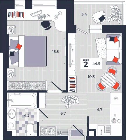 Продаётся 2-комнатная квартира в строящемся доме (Дом 20), срок сдачи: I-кв. 2026, общей площадью 48 кв.м., на 2 этаже. Расположение, транспортная доступность Новый жилой комплекс "Юго-Восточный" строится в Туле, в 3,5 км от центра города. Благодаря удачным транспортным развязкам, автолюбители смогут доехать до центральных кварталов примерно за 5 10 минут, составив наиболее быстрый и удобный маршрут с учетом загруженности дорог. Проблем с мобильностью не возникнет и у пассажиров общественного транспорта. Рядом с домом расположены остановки автобусов и маршрутных такси, которые быстро довезут до любого района города. Так, чтобы добраться до центра, следует дойти пешком до остановки "Медтехника", где останавливается маршрутное такси, доезжающее до центральных кварталов всего за 7 8 минут. Инфраструктура Район, где возводится новый жилой комплекс, активно застраивается, и сеть инфраструктуры сов временем будет расширяться. Но и сейчас все, что нужно для комфортной жизни в городе, находится недалеко от жилого комплекса. В шаговой доступности расположены продуктовые магазины: "Виктория", "Овощи-фрукты", Магазин рыбы и мяса птицы, магазин мяса и колбас "У Максима", супермаркеты "Дикси", "Пятерочка", "SPAR". Неподалеку находится гипермаркет "Линия", крупный торговый центр, в котором расположены отделения банков, гипермаркет "Глобус", салон оптики, мебельный магазин "Столплит", зоомагазин "Четыре лапы" и пр. В соседнем здании находится строительный гипермаркет "Леруа Мерлен", за ним крупный магазин товаров для спорта, туризма и активного отдыха "Декатлон".Недалеко от жилого комплекса открыты кафе и рестораны: кофейня "Bonape", пиццерия "Культура", кафе "Вкуснов", кафе быстрого обслуживания "Rapido", ресторан "У фонтана" и пр.В районе есть аптеки, поликлиники, диагностические центры. В шаговой доступности от жилого комплекса расположено несколько детских садиков, в том числе, садик комбинированного вида "Алые паруса". Есть дошкольные отделения, входящие в состав образовательных центров, Центры развития ребенка. Поблизости расположены средние школы, в том числе, школа для детей с ОВЗ. Рядом с жилым комплексом находится Тульская Духовная Семинария и Суворовское училище. Надежность застройщик: достраивает объект ООО Ин-Групп.АрхитектураЖилой комплекс будет представлен 19 монолитно-кирпичными корпусами переменной этажности, выполненными в едином архитектурном стиле. При строительстве ЖК "Юго-Восточный" применяются современные материалы высокого качества, которые обеспечивают надежность домов и комфортный микроклимат в помещениях. Каждая секция оснащается современными лифтами. Помещения общего пользования отделываются экологичными материалами. Квартиры предлагаются однокомнатные (от 43,9 кв. м), двухкомнатные (от 45,8 кв. м), трехкомнатные (от 60,4 кв. м) и четырехкомнатные (от 87,2 кв. м), а также уютные студии (от 28,9 кв. м).На внутренней территории проводится комплексное благоустройство: озеленение, организация игровых площадок, мест для отдыха и заняти