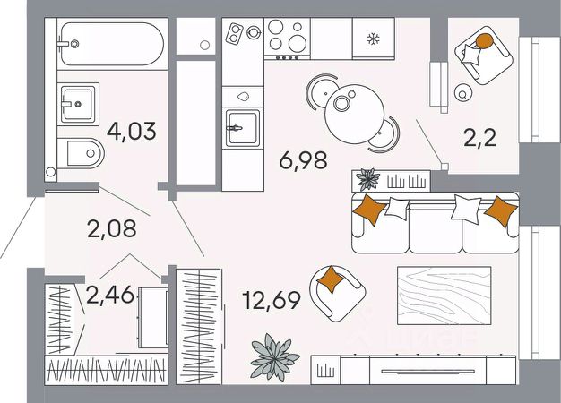 Продаётся студия в строящемся доме (Корпус 1), срок сдачи: I-кв. 2029, общей площадью 30.44 кв.м., на 4 этаже.