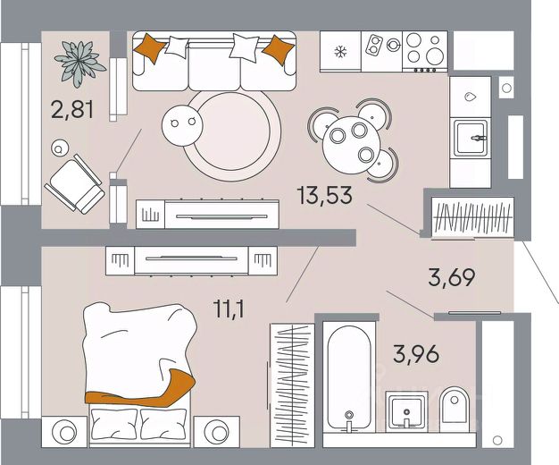 Продаётся 1-комнатная квартира в строящемся доме (Корпус 1), срок сдачи: I-кв. 2029, общей площадью 37.3 кв.м., на 4 этаже.
