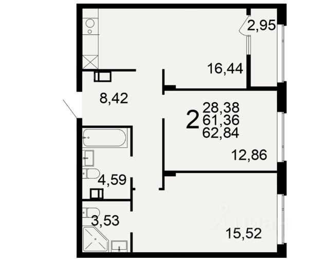 Продаётся 2-комнатная квартира в строящемся доме (Корпус 1), срок сдачи: I-кв. 2029, общей площадью 56.14 кв.м., на 4 этаже.