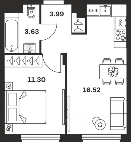Кухня-гостиная оснащена современным качественным кухонным гарнитуром и техникой, что позволит новым собственникам существенно сэкономить на первоначальных вложениях. Мебель в квартире может остаться по договорённости.
