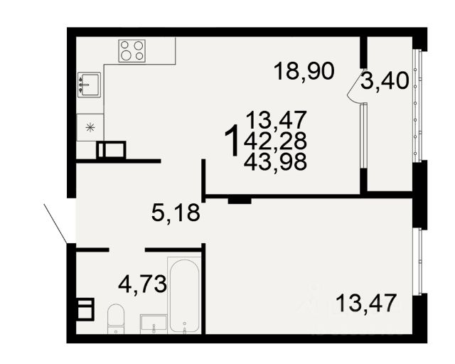 Планировка продумана для комфортной жизни семьи: две отдельные спальни и большая кухня-гостиная, где можно собираться всей семьёй и принимать гостей. Из кухни-гостиной предусмотрен выход на один из балконов — это идеальное место для утреннего кофе или вечернего отдыха.