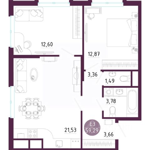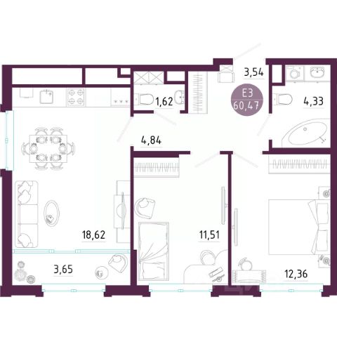Квартира в новом жилом комплексе комфорт-класса "Всё и сразу".