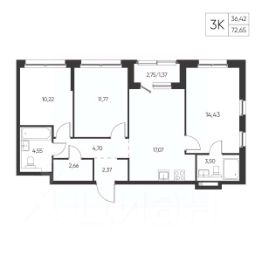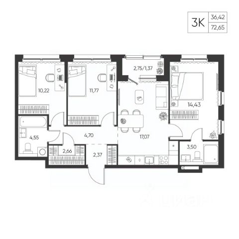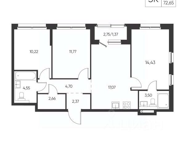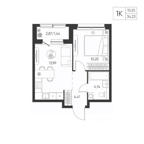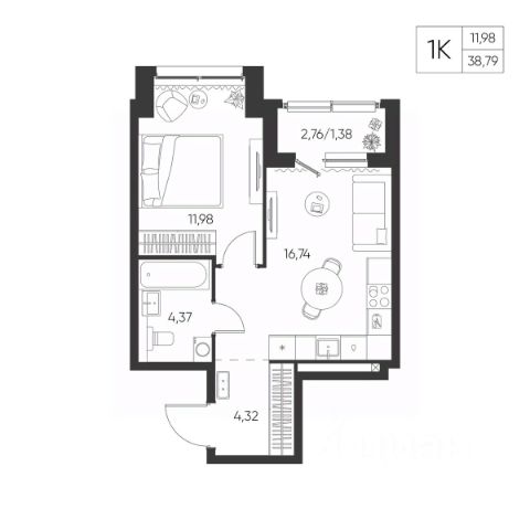 Совмещенный санузел, наличие лоджии добавляют комфорта.