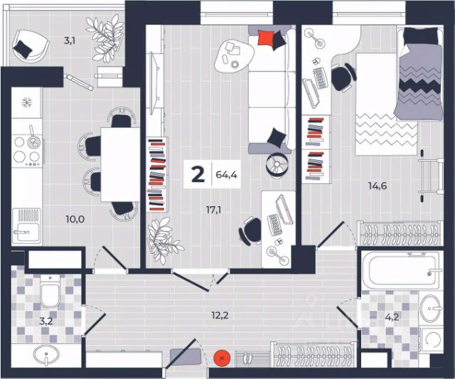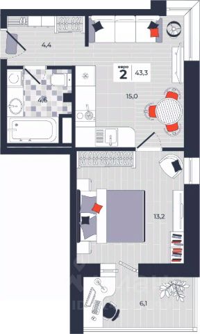 Продаётся 2-комнатная квартира в строящемся доме (Дом 28), срок сдачи: I-кв. 2027, общей площадью 40.8 кв.м., на 8 этаже. Расположение, транспортная доступность Новый жилой комплекс "Юго-Восточный" строится в Туле, в 3,5 км от центра города. Благодаря удачным транспортным развязкам, автолюбители смогут доехать до центральных кварталов примерно за 5 10 минут, составив наиболее быстрый и удобный маршрут с учетом загруженности дорог. Проблем с мобильностью не возникнет и у пассажиров общественного транспорта. Рядом с домом расположены остановки автобусов и маршрутных такси, которые быстро довезут до любого района города. Так, чтобы добраться до центра, следует дойти пешком до остановки "Медтехника", где останавливается маршрутное такси, доезжающее до центральных кварталов всего за 7 8 минут. Инфраструктура Район, где возводится новый жилой комплекс, активно застраивается, и сеть инфраструктуры сов временем будет расширяться. Но и сейчас все, что нужно для комфортной жизни в городе, находится недалеко от жилого комплекса. В шаговой доступности расположены продуктовые магазины: "Виктория", "Овощи-фрукты", Магазин рыбы и мяса птицы, магазин мяса и колбас "У Максима", супермаркеты "Дикси", "Пятерочка", "SPAR". Неподалеку находится гипермаркет "Линия", крупный торговый центр, в котором расположены отделения банков, гипермаркет "Глобус", салон оптики, мебельный магазин "Столплит", зоомагазин "Четыре лапы" и пр. В соседнем здании находится строительный гипермаркет "Леруа Мерлен", за ним крупный магазин товаров для спорта, туризма и активного отдыха "Декатлон".Недалеко от жилого комплекса открыты кафе и рестораны: кофейня "Bonape", пиццерия "Культура", кафе "Вкуснов", кафе быстрого обслуживания "Rapido", ресторан "У фонтана" и пр.В районе есть аптеки, поликлиники, диагностические центры. В шаговой доступности от жилого комплекса расположено несколько детских садиков, в том числе, садик комбинированного вида "Алые паруса". Есть дошкольные отделения, входящие в состав образовательных центров, Центры развития ребенка. Поблизости расположены средние школы, в том числе, школа для детей с ОВЗ. Рядом с жилым комплексом находится Тульская Духовная Семинария и Суворовское училище. Надежность застройщик: достраивает объект ООО Ин-Групп.АрхитектураЖилой комплекс будет представлен 19 монолитно-кирпичными корпусами переменной этажности, выполненными в едином архитектурном стиле. При строительстве ЖК "Юго-Восточный" применяются современные материалы высокого качества, которые обеспечивают надежность домов и комфортный микроклимат в помещениях. Каждая секция оснащается современными лифтами. Помещения общего пользования отделываются экологичными материалами. Квартиры предлагаются однокомнатные (от 43,9 кв. м), двухкомнатные (от 45,8 кв. м), трехкомнатные (от 60,4 кв. м) и четырехкомнатные (от 87,2 кв. м), а также уютные студии (от 28,9 кв. м).На внутренней территории проводится комплексное благоустройство: озеленение, организация игровых площадок, мест для отдыха и заня