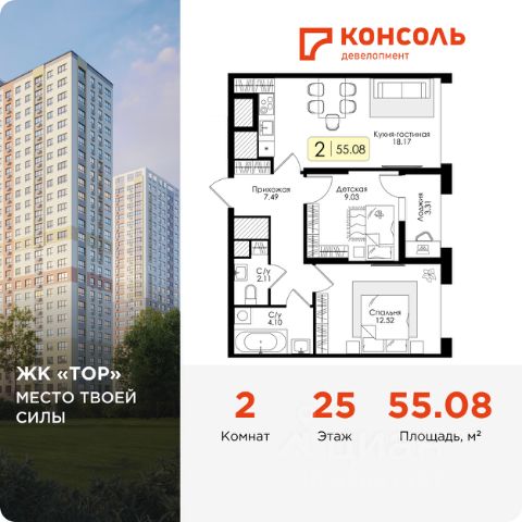 Продается однокомнатная квартира 288 с чистовой отделкой в ЖК "ТОР" площадью 33.49 на 25 этаже от застройщика Консоль девелопмент. Жилому комплексу ТОР присвоен повышенный уровень комфортности — комфорт плюс. Он подразумевает светлые просторные квартиры с большими окнами и удобной планировкой, оригинальные парадные и общественные пространства.
