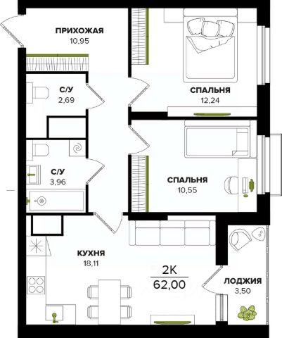 ЖК Семейный бульвар -3, ГП, 2, квартира 518