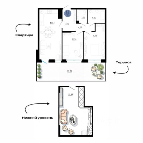 Продаётся 2-комнатная квартира в сданном доме (Академика Насоновой, 9 (Дом 20)), срок сдачи: IV-кв. 2025, общей площадью 47.3 кв.м., на 3 этаже. Расположение, транспортная доступность Новый жилой комплекс "Юго-Восточный" строится в Туле, в 3,5 км от центра города. Благодаря удачным транспортным развязкам, автолюбители смогут доехать до центральных кварталов примерно за 5 10 минут, составив наиболее быстрый и удобный маршрут с учетом загруженности дорог. Проблем с мобильностью не возникнет и у пассажиров общественного транспорта. Рядом с домом расположены остановки автобусов и маршрутных такси, которые быстро довезут до любого района города. Так, чтобы добраться до центра, следует дойти пешком до остановки "Медтехника", где останавливается маршрутное такси, доезжающее до центральных кварталов всего за 7 8 минут. Инфраструктура Район, где возводится новый жилой комплекс, активно застраивается, и сеть инфраструктуры сов временем будет расширяться. Но и сейчас все, что нужно для комфортной жизни в городе, находится недалеко от жилого комплекса. В шаговой доступности расположены продуктовые магазины: "Виктория", "Овощи-фрукты", Магазин рыбы и мяса птицы, магазин мяса и колбас "У Максима", супермаркеты "Дикси", "Пятерочка", "SPAR". Неподалеку находится гипермаркет "Линия", крупный торговый центр, в котором расположены отделения банков, гипермаркет "Глобус", салон оптики, мебельный магазин "Столплит", зоомагазин "Четыре лапы" и пр. В соседнем здании находится строительный гипермаркет "Леруа Мерлен", за ним крупный магазин товаров для спорта, туризма и активного отдыха "Декатлон".Недалеко от жилого комплекса открыты кафе и рестораны: кофейня "Bonape", пиццерия "Культура", кафе "Вкуснов", кафе быстрого обслуживания "Rapido", ресторан "У фонтана" и пр.В районе есть аптеки, поликлиники, диагностические центры. В шаговой доступности от жилого комплекса расположено несколько детских садиков, в том числе, садик комбинированного вида "Алые паруса". Есть дошкольные отделения, входящие в состав образовательных центров, Центры развития ребенка. Поблизости расположены средние школы, в том числе, школа для детей с ОВЗ. Рядом с жилым комплексом находится Тульская Духовная Семинария и Суворовское училище. Надежность застройщик: достраивает объект ООО Ин-Групп.АрхитектураЖилой комплекс будет представлен 19 монолитно-кирпичными корпусами переменной этажности, выполненными в едином архитектурном стиле. При строительстве ЖК "Юго-Восточный" применяются современные материалы высокого качества, которые обеспечивают надежность домов и комфортный микроклимат в помещениях. Каждая секция оснащается современными лифтами. Помещения общего пользования отделываются экологичными материалами. Квартиры предлагаются однокомнатные (от 43,9 кв. м), двухкомнатные (от 45,8 кв. м), трехкомнатные (от 60,4 кв. м) и четырехкомнатные (от 87,2 кв. м), а также уютные студии (от 28,9 кв. м).На внутренней территории проводится комплексное благоустройство: озеленение, организация игровых площадок,