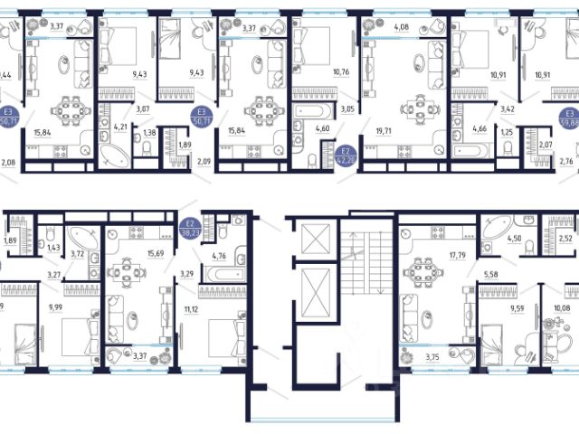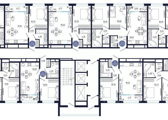 — Кладовые на каждом этаже (4 шт. на этаже), доступно приобретение кладовых помещений на -1 этаже — для хранения сезонных вещей, спортивного инвентаря, заготовок.