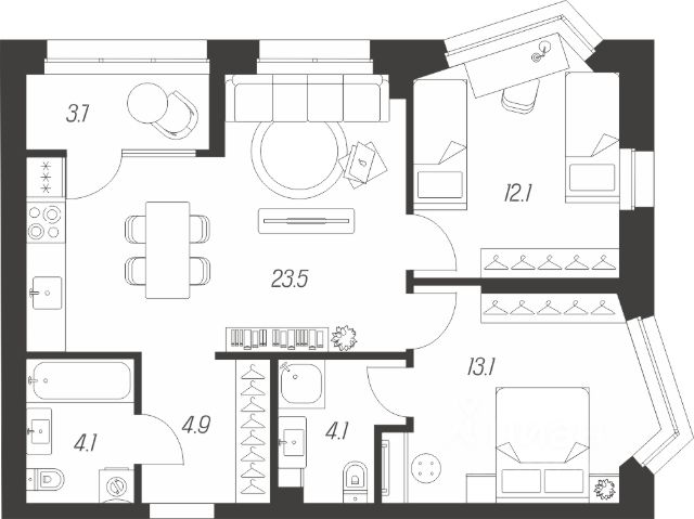 три изолированные спальни — у каждого члена семьи своя приватная зона