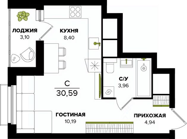 - Зона ожидания с мягкой мебелью, где можно встретить курьера или подождать такси