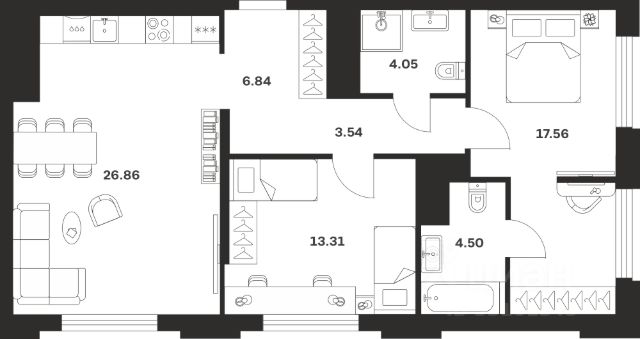 | 🔷 Средняя цена за м2: | 153 тыс. руб./м² |