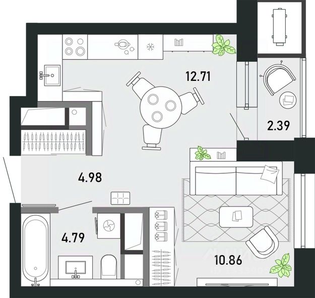 Функционально -уютная студия, полностью готова к вашему проживанию. Выполнен качественный ремонт, индивидуальная стилистика современной отделки. Мебель, бытовая техника, новая сантехника, предметы домашнего обихода ждут вас.