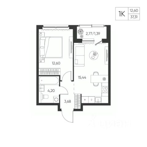Продаётся 1-комнатная квартира в сданном доме (Аркадия Шипунова, 1 (85-86)), срок сдачи: IV-кв. 2025, общей площадью 41.6 кв.м., на 3 этаже. Расположение, транспортная доступность