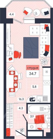 Продаётся студия в сданном доме (Академика Насоновой, 9 (Дом 20)), срок сдачи: IV-кв. 2025, общей площадью 34.7 кв.м., на 13 этаже. Расположение, транспортная доступность Новый жилой комплекс "Юго-Восточный" строится в Туле, в 3,5 км от центра города. Благодаря удачным транспортным развязкам, автолюбители смогут доехать до центральных кварталов примерно за 5 10 минут, составив наиболее быстрый и удобный маршрут с учетом загруженности дорог. Проблем с мобильностью не возникнет и у пассажиров общественного транспорта. Рядом с домом расположены остановки автобусов и маршрутных такси, которые быстро довезут до любого района города. Так, чтобы добраться до центра, следует дойти пешком до остановки "Медтехника", где останавливается маршрутное такси, доезжающее до центральных кварталов всего за 7 8 минут. Инфраструктура Район, где возводится новый жилой комплекс, активно застраивается, и сеть инфраструктуры сов временем будет расширяться. Но и сейчас все, что нужно для комфортной жизни в городе, находится недалеко от жилого комплекса. В шаговой доступности расположены продуктовые магазины: "Виктория", "Овощи-фрукты", Магазин рыбы и мяса птицы, магазин мяса и колбас "У Максима", супермаркеты "Дикси", "Пятерочка", "SPAR". Неподалеку находится гипермаркет "Линия", крупный торговый центр, в котором расположены отделения банков, гипермаркет "Глобус", салон оптики, мебельный магазин "Столплит", зоомагазин "Четыре лапы" и пр. В соседнем здании находится строительный гипермаркет "Леруа Мерлен", за ним крупный магазин товаров для спорта, туризма и активного отдыха "Декатлон".Недалеко от жилого комплекса открыты кафе и рестораны: кофейня "Bonape", пиццерия "Культура", кафе "Вкуснов", кафе быстрого обслуживания "Rapido", ресторан "У фонтана" и пр.В районе есть аптеки, поликлиники, диагностические центры. В шаговой доступности от жилого комплекса расположено несколько детских садиков, в том числе, садик комбинированного вида "Алые паруса". Есть дошкольные отделения, входящие в состав образовательных центров, Центры развития ребенка. Поблизости расположены средние школы, в том числе, школа для детей с ОВЗ. Рядом с жилым комплексом находится Тульская Духовная Семинария и Суворовское училище. Надежность застройщик: достраивает объект ООО Ин-Групп.АрхитектураЖилой комплекс будет представлен 19 монолитно-кирпичными корпусами переменной этажности, выполненными в едином архитектурном стиле. При строительстве ЖК "Юго-Восточный" применяются современные материалы высокого качества, которые обеспечивают надежность домов и комфортный микроклимат в помещениях. Каждая секция оснащается современными лифтами. Помещения общего пользования отделываются экологичными материалами. Квартиры предлагаются однокомнатные (от 43,9 кв. м), двухкомнатные (от 45,8 кв. м), трехкомнатные (от 60,4 кв. м) и четырехкомнатные (от 87,2 кв. м), а также уютные студии (от 28,9 кв. м).На внутренней территории проводится комплексное благоустройство: озеленение, организация игровых площадок, мест для отд