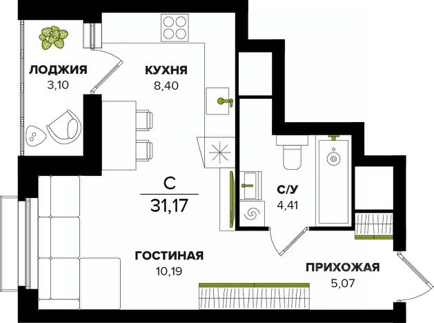 Продаётся студия в строящемся доме (Дом 20), срок сдачи: IV-кв. 2025, общей площадью 35.1 кв.м., на 10 этаже. Расположение, транспортная доступность Новый жилой комплекс "Юго-Восточный" строится в Туле, в 3,5 км от центра города. Благодаря удачным транспортным развязкам, автолюбители смогут доехать до центральных кварталов примерно за 5 10 минут, составив наиболее быстрый и удобный маршрут с учетом загруженности дорог. Проблем с мобильностью не возникнет и у пассажиров общественного транспорта. Рядом с домом расположены остановки автобусов и маршрутных такси, которые быстро довезут до любого района города. Так, чтобы добраться до центра, следует дойти пешком до остановки "Медтехника", где останавливается маршрутное такси, доезжающее до центральных кварталов всего за 7 8 минут. Инфраструктура Район, где возводится новый жилой комплекс, активно застраивается, и сеть инфраструктуры сов временем будет расширяться. Но и сейчас все, что нужно для комфортной жизни в городе, находится недалеко от жилого комплекса. В шаговой доступности расположены продуктовые магазины: "Виктория", "Овощи-фрукты", Магазин рыбы и мяса птицы, магазин мяса и колбас "У Максима", супермаркеты "Дикси", "Пятерочка", "SPAR". Неподалеку находится гипермаркет "Линия", крупный торговый центр, в котором расположены отделения банков, гипермаркет "Глобус", салон оптики, мебельный магазин "Столплит", зоомагазин "Четыре лапы" и пр. В соседнем здании находится строительный гипермаркет "Леруа Мерлен", за ним крупный магазин товаров для спорта, туризма и активного отдыха "Декатлон".Недалеко от жилого комплекса открыты кафе и рестораны: кофейня "Bonape", пиццерия "Культура", кафе "Вкуснов", кафе быстрого обслуживания "Rapido", ресторан "У фонтана" и пр.В районе есть аптеки, поликлиники, диагностические центры. В шаговой доступности от жилого комплекса расположено несколько детских садиков, в том числе, садик комбинированного вида "Алые паруса". Есть дошкольные отделения, входящие в состав образовательных центров, Центры развития ребенка. Поблизости расположены средние школы, в том числе, школа для детей с ОВЗ. Рядом с жилым комплексом находится Тульская Духовная Семинария и Суворовское училище. Надежность застройщик: достраивает объект ООО Ин-Групп.АрхитектураЖилой комплекс будет представлен 19 монолитно-кирпичными корпусами переменной этажности, выполненными в едином архитектурном стиле. При строительстве ЖК "Юго-Восточный" применяются современные материалы высокого качества, которые обеспечивают надежность домов и комфортный микроклимат в помещениях. Каждая секция оснащается современными лифтами. Помещения общего пользования отделываются экологичными материалами. Квартиры предлагаются однокомнатные (от 43,9 кв. м), двухкомнатные (от 45,8 кв. м), трехкомнатные (от 60,4 кв. м) и четырехкомнатные (от 87,2 кв. м), а также уютные студии (от 28,9 кв. м).На внутренней территории проводится комплексное благоустройство: озеленение, организация игровых площадок, мест для отдыха и занятий спортом,