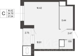 • ✅ Минимальная площадь: 37,5 м²