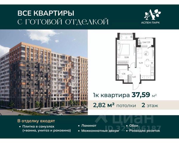 • ✅ Минимальная площадь: 37,6 м²