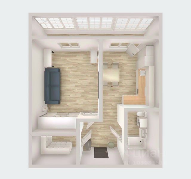 Площадь квартиры составляет 43,4 кв.м, лоджия 6,6 кв.м. Большая просторная кухня с выходом на лоджию. Просторная комната со спальным местом, встроенным шкафом на заказ для хранения одежды, рабочей зоной и туалетным столиком.