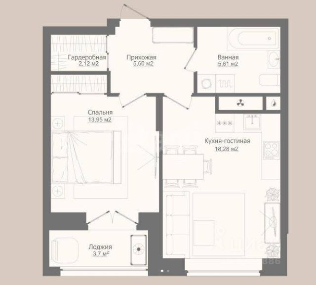 - спальня с лоджией,