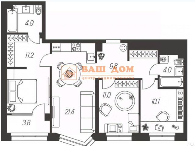 просторная кухня-гостиная — сердце квартиры для семейных ужинов и приёма гостей