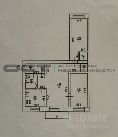 с кухней- гостиной и изолированной спальней, общая площадь 50,4 м2, просторный