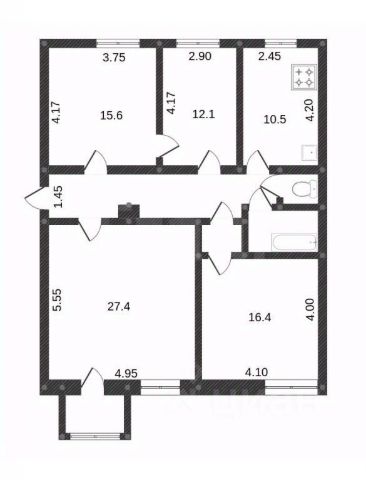 Квартира просторная и светлая. Высокие потолки 2.85 м.