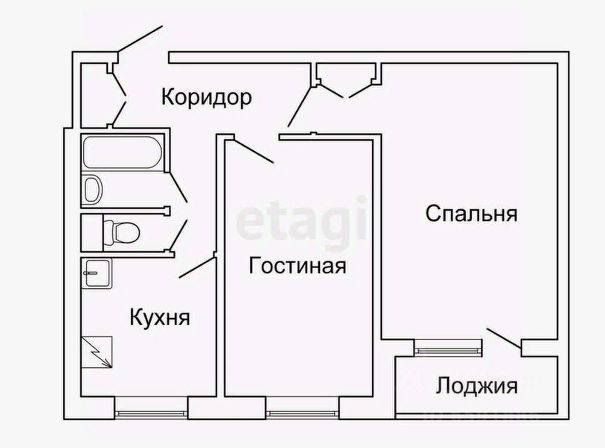 Общая площадь квартиры: 44,9 кв.м. Просторная лоджия.