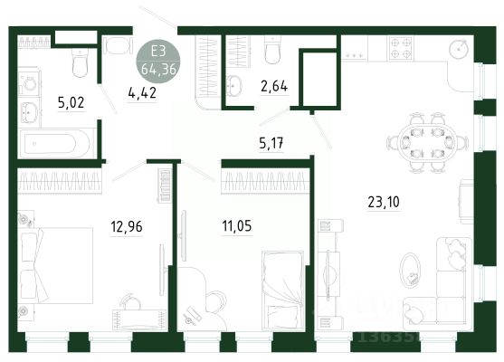 Номер в базе: 56752. Вашему вниманию представляется квартира по цене ниже, чем у застройщика. Просторная квартира площадью 65 квадратных метров в новом жилом комплексе, расположенная на 9 этаже. Квартира предлагает великолепные виды и комфортное проживание. Внутреннее пространство включает две отдельные комнаты, что идеально подходит для семьи или для организации рабочего пространства. Просторная кухня-гостиная площадью почти 21 метр станет центром домашнего уюта и общения, где вы сможете проводить время с близкими и друзьями. Черновая отделка позволяет вам создать интерьер по своему вкусу и предпочтениям. Не упустите возможность стать владельцем этой замечательной квартиры в новом районе с развитой инфраструктурой! Звоните для организации просмотра. Звоните!