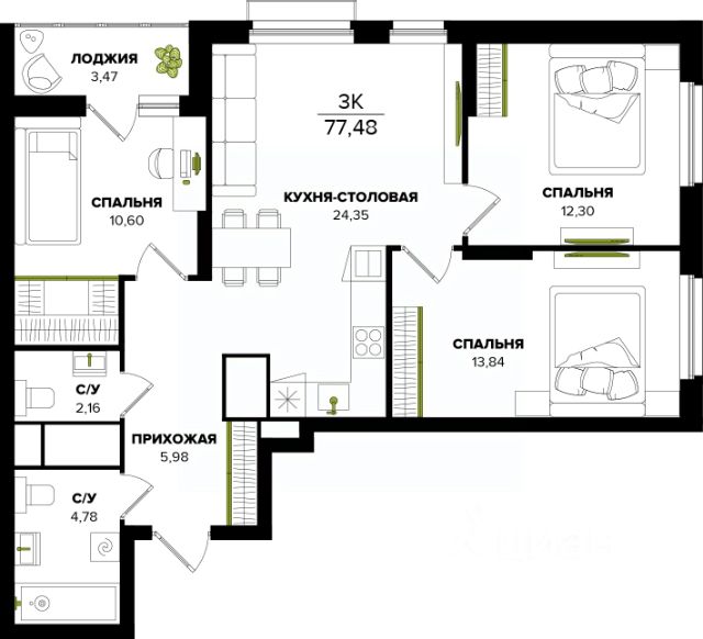 ЖК Семейный бульвар, ГП, 1, квартира 205