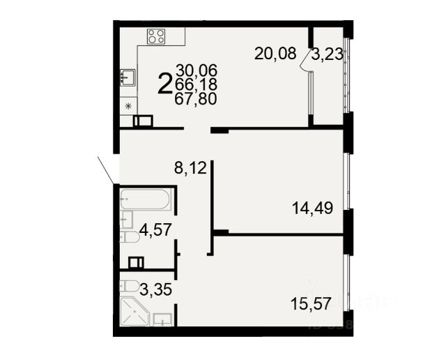 - электропроводка на негорючем медном кабеле 220 V с установкой электрического щита с электронными приборами учета на лестничной площадке и распределительного щита в квартире, с разводкой по квартире согласно проекту с установкой оконечных элементов (розетки, выключатели, патроны освещения); - штукатурка кирпичных стен, кроме ниш прохождения стояков водопровода и канализации, экрана ограждений лоджий; - стяжка пола; - шумоизоляция пола; - поверхностная, обмазочная гидроизоляция в санузле; - система отопления и горячего водоснабжения от котельной с установкой прибора учета расхода тепла; - установлены приборы (радиаторы)отопления с термостатическими головками и электрические полотенцесушители; - установлена силовая электрическая розетка для самостоятельной установки Участником электрической плиты; - смонтированы внутриквартирные стояки холодного и горячего водоснабжения (с установкой приборов учета), стояки водоотведения (канализация). Разводка труб водоснабжения и водоотведения (канализация) до сантехнических приборов не производится, сантехнические приборы: унитаз, ванна, мойка, раковина, не устанавливаются; - оконные проемы в комнате(-ах) и в кухне остеклены ПВХ-профилем с отливом и подоконником; - установлен видео домофон; - обеспечен доступ для подключения к телевизионному вещанию, интернету, телефонной линии (точка подключения-щит слаботочного оборудования, расположенный под потолком в квартире).