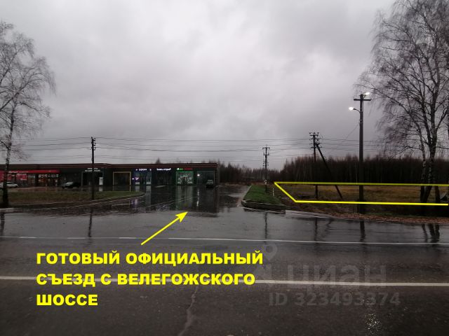 Земля вдоль Велегожского шоссе под бизнес (магазин, кафе и проч.) в готовом бизнес-районе. ГОТОВЫЙ ОФИЦИАЛЬНЫЙ СЪЕЗД С ВЕЛЕГОЖСКОГО ШОССЕ ! Можно отмежевать участок любого размера от 3 га и до 6 соток. В непосредственной близости магазины Пятёрочка, Верный, Озон,...