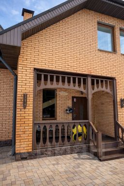 Основная часть Дома на монолитном ж/б фундаменте, стены из кирпича, на бетонных сваях пристроена душевая комната, туалет на улице, но можно сделать и в доме.