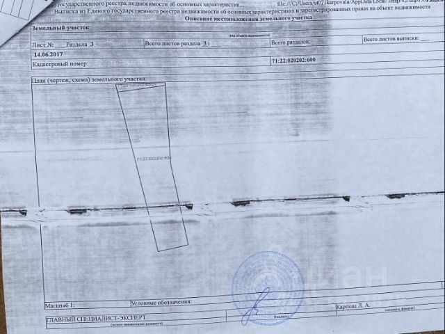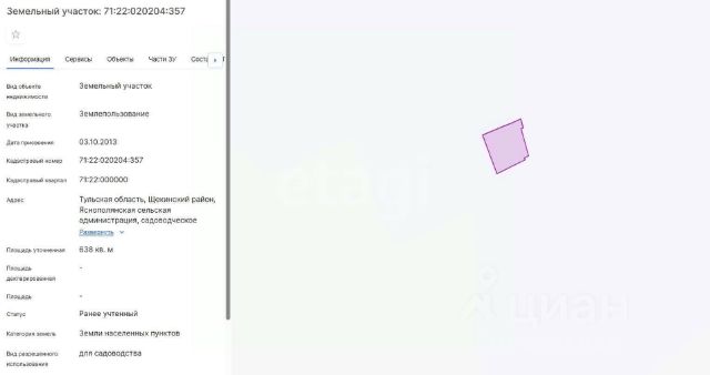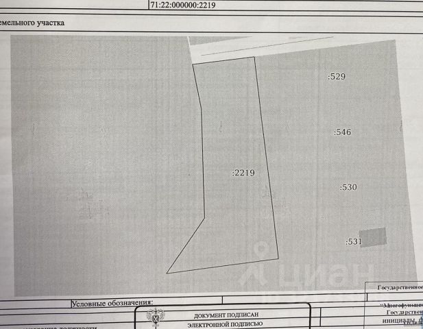 Продается земельный участок категории сельхозназначения 7,6 га. Участок ранее не использовался. Очень жаль пропадать такому большому количеству земли. Находится вблизи населенного пункта. * Кадастровый номер: 71:22:020101:298 * участок стоит на кадастровом учете. * Транспортная доступность. * уточненная площадь: 76 000 кв. м. * Подьездные пути: асфальтированная и грунтовая дорога. Разумный торг уместен