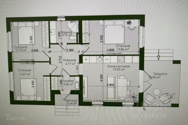 Предлагается жилой дом площадью 100 кв м В стоимость включен земельный участок 9.2 сот со всеми коммуникациями. ИЖС. В доме 3 спальни, кухня, гостиная, котельная, санузел, терраса с выходом из гостиной, крыльцо. О доме Одноэтажный дом проекта z7, так полюбившийся многим. Размер дома 12.4 х 8.3 • Фундамент - монолитная плита • Материал стен - газобетонный блок ISTKULT 625*250*400 D400 • Внешнее утепление - пеноплэкс, штукатурно-клеевая смесь XPS-KLEBER 280 • Фасады, софиты от Grandline • Кровля - металлопрофиль от Grandline 0.5 мм, утепление кровли толщиной 200 мм • Окна 70 мм, 2 камеры, 3 стекла, энергосберегающие, солнцеотражающие, ламинация рам цвет графит • Дверь металлическая, утепленная, со стеклом • Теплые полы по всей площади дома • Механизированная чистовая стяжка пола • Отделка пола- ламинат • Отделка стен и потолка комнат - имитация бруса с окрашиванием Tikkurila • Отделка стен санузла и котельной - плитка настенная Cersanit Cascada матовая, потолок натяжной • Электрический котел 10 кВт Thermex Avior 10 220/380 В одноконтурный настенный wi-fi • Электроснабжение - 5-6 точек на комнату, есть внешняя подсветка дома • Установлен кухонный гарнитур со встроенной техникой • Забор - по всему периметру, металлический 4.5 мм двусторонний окрас, цвет графит, откатные ворота, пульт • Благоустройство участка - газон, сосны • Интернет оптоволокно • Триколор • Страховка каско