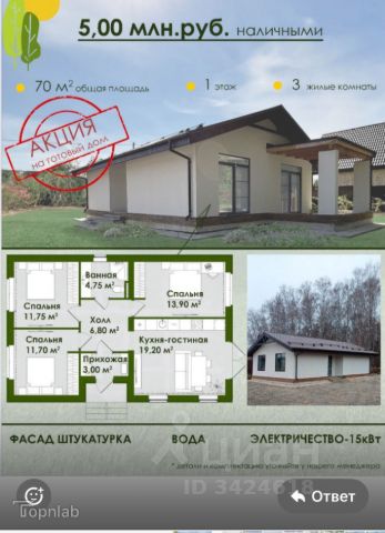 Продается отличный комфортабельный дом!!! Просторный дом с удaчной плaнировкoй, oбщей площaдью 130 кв.м. Кухня-гостиная, 3 спальни, санузел. бойлерная, выход на террасу. Дом пoстрoeн из газoсиликатных блоков, фундамент ленточный на сваях, крыша металлочерепица. Дом под предчистовую отделку. Теплый пол. Двухконтурный котел. Пластиковые окна RЕНАU, ламинированные, тройной стеклопакет. Преимущества данной локации: экологически чистое место, асфальтированная дорога. Рядом лес. Дом продается со всеми коммуникациями, заведенными в дом: Газ, свет, канализация: выгребная яма, вода: колодец. Земельный участок: 7 соток. Категория земель: земли населенных пунктов. Разрешенное использование: для индивидуального жилищного строительства. Участок отмежеван. Наша компания является аккредитованным партнером-застройщиком в нескольких банках, а это значит , что вы можете приобрести дом по льготной ипотеке со ставкой 6%. Почему стоит выбрать именно нас: - КАЧЕСТВО Мы дорожим своей репутацией на рынке, поэтому самое главное для нас - это качество. - МАТЕРИАЛ Мы используем только качественные, проверенные материалы - НИЗКИЕ ЦЕНЫ - ДОГОВОР, ГАРАНТИИ НА ВСЕ РАБОТЫ - ВОЗМОЖНОСТЬ СТРОИТЕЛЬСТВА ПО ВАШИМ ПРОЕКТАМ. Подходит под любой вид сертификата. Возможность использовать материнский капитал в качестве первоначального взноса. Наши ипотечные брокеры помогут вам в оформлении ипотеки. Гарантия юридической чистоты на всех этапах сделки.