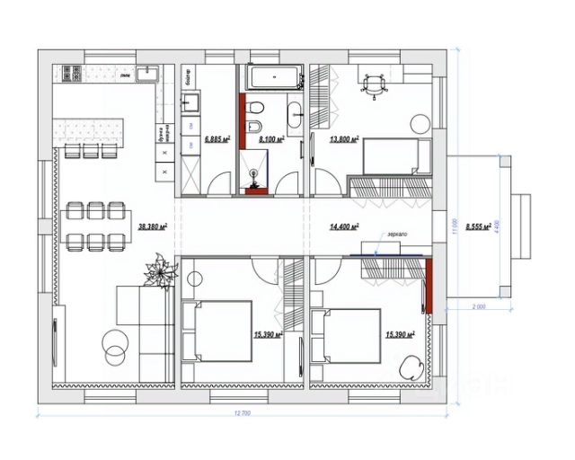 • ✅ Объект наибольшей площади: 148 м² (площадь дома), 12 сот. (площадь участка)