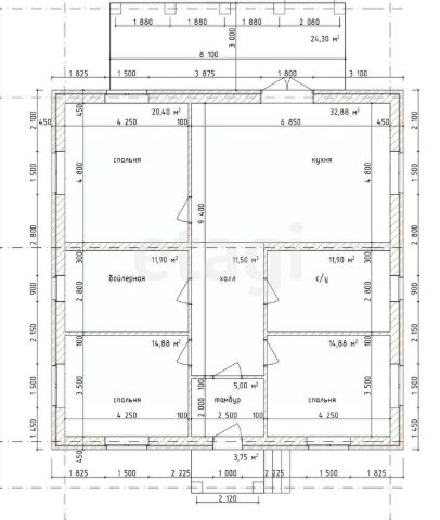 Обратите внимание: фундамент глубиной 2,5 метра был заложен с соблюдением всех технологий и выдержан в соответствии с требованиями. Это не быстровозводимое здание, как многие современные постройки. Толщина стен составляет 500 мм.
