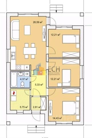 Этот дом представляет собой полностью готовое жильё, в которое можно въехать сразу после покупки. В нём уже установлены ванна и унитазы, а также есть временный кухонный гарнитур.