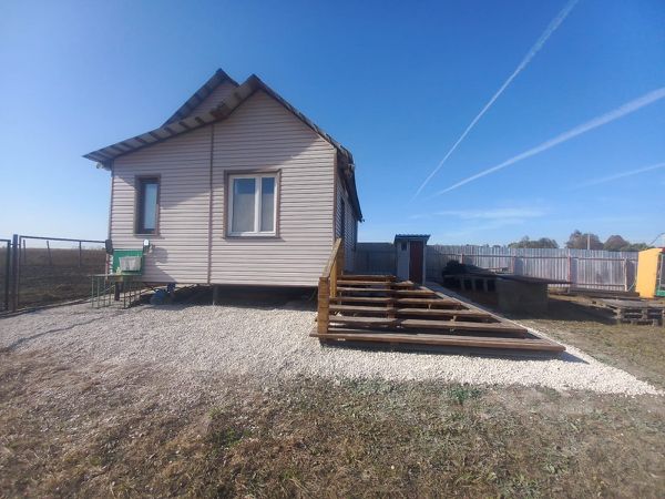 Дом крепкий на бетонном фундаменте, построен по каркасной технологии, утеплённый, снаружи обшит сайдингом.