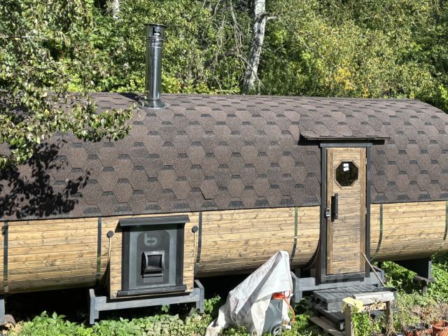 Рядом с домом беседка, в конце участка большой хозблок, для машины есть ворота и парковочное место.