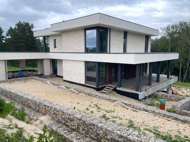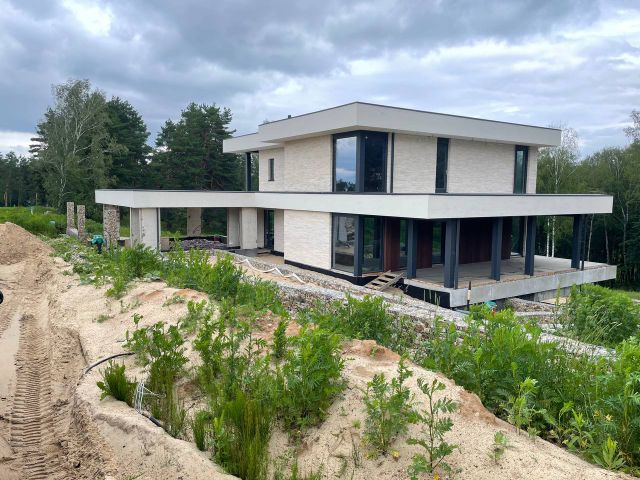 Продуманное пространство: большая гостиная-кухня, 2 спальни, кабинет, 2 санузла, котельная, гардеробная, прихожая. Во всех комнатах высокие потолки, много света и воздуха, уютное разноуровневое освещение. Приватное расположение на краю поселка, окна основных комнат и терраса выходят на открытое поле и березы.