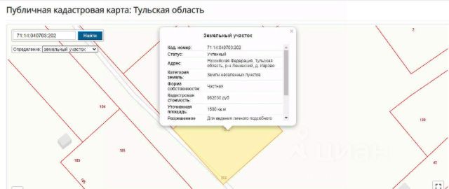 Продажа от собственника. Участок 12 соток под ИЖС. Участок расположен в непосредственной близости от Свято-Никольского храма и Ясной Поляны. Рядом пруд и родник, большая детская площадка. В 10 минутах ходьбы наодится поселок Первомайский с полностью развитой инфраструктурой (парк, школы, больница, ФОК с бассейном, магазины, общ.транспорт и т.д.). В 7 минутах ходьбы-детский оздоровительный лагерь "Химик" и "Первомайская Кадетская школа". 20минут на автомобиле до пр.Ленина г.Тула. Участок отмежеван. Подъезд к участку круглогодичный-две новые асфальтированные дороги. Коммуникации-газ (разрешение есть, в 2м от участка), электроэнергия (в 2м от участка), водоснабдение (по нранице участка, впереди). Разрешенная площадь под застройку 413кв.м., на данной площади вмещается дом 11м7м, с внешней шириной стен 6м: общая площадь (разрешенное место) застройки 120кв.м. (два этажа 240кв.м.), т.к. участок имеет частичное ограничение как зона с особыми условиями использования территории "магстральный газопровод", т.е. данный газопровод расположен в 250м от участка. На фото площадь застройки ИЖС (верхний треугольник), остальная площадь участка можно строить любое некапитальное строение (баня, бассейн, забор, беседка, теплица и т.д.). При желании площадь застройки под ИЖС можно увеличить - законом предусмотренно согласование по ст.56 Земельного Кодекса РФ.
