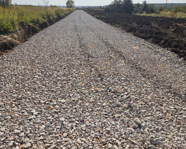 Сделана гравийная парковочная площадка, дорожка к дому. Участок обнесен забором из деревянного штакетника.