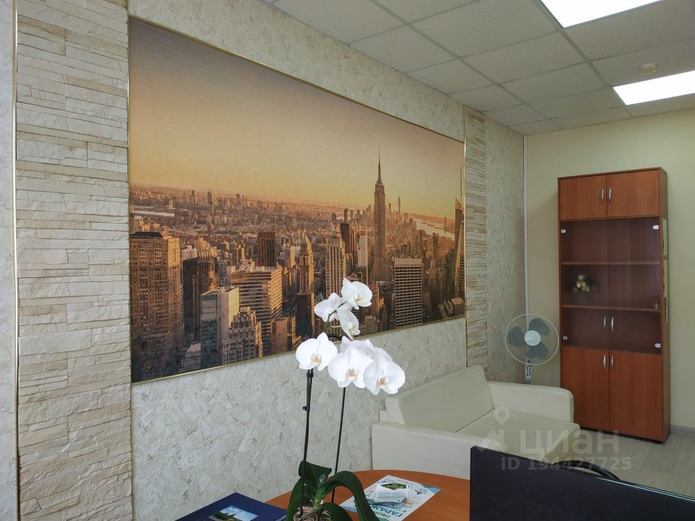 Отделка офиса: ламинат, декоративный камень, фото-панно заказное, потолок- "армстронг" со встроенными светильниками.